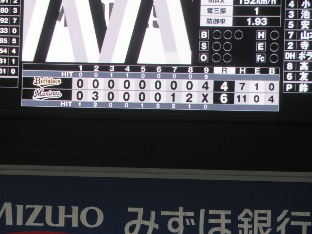 試合の結果は、マリーンズは2対5で負けてしまいました。