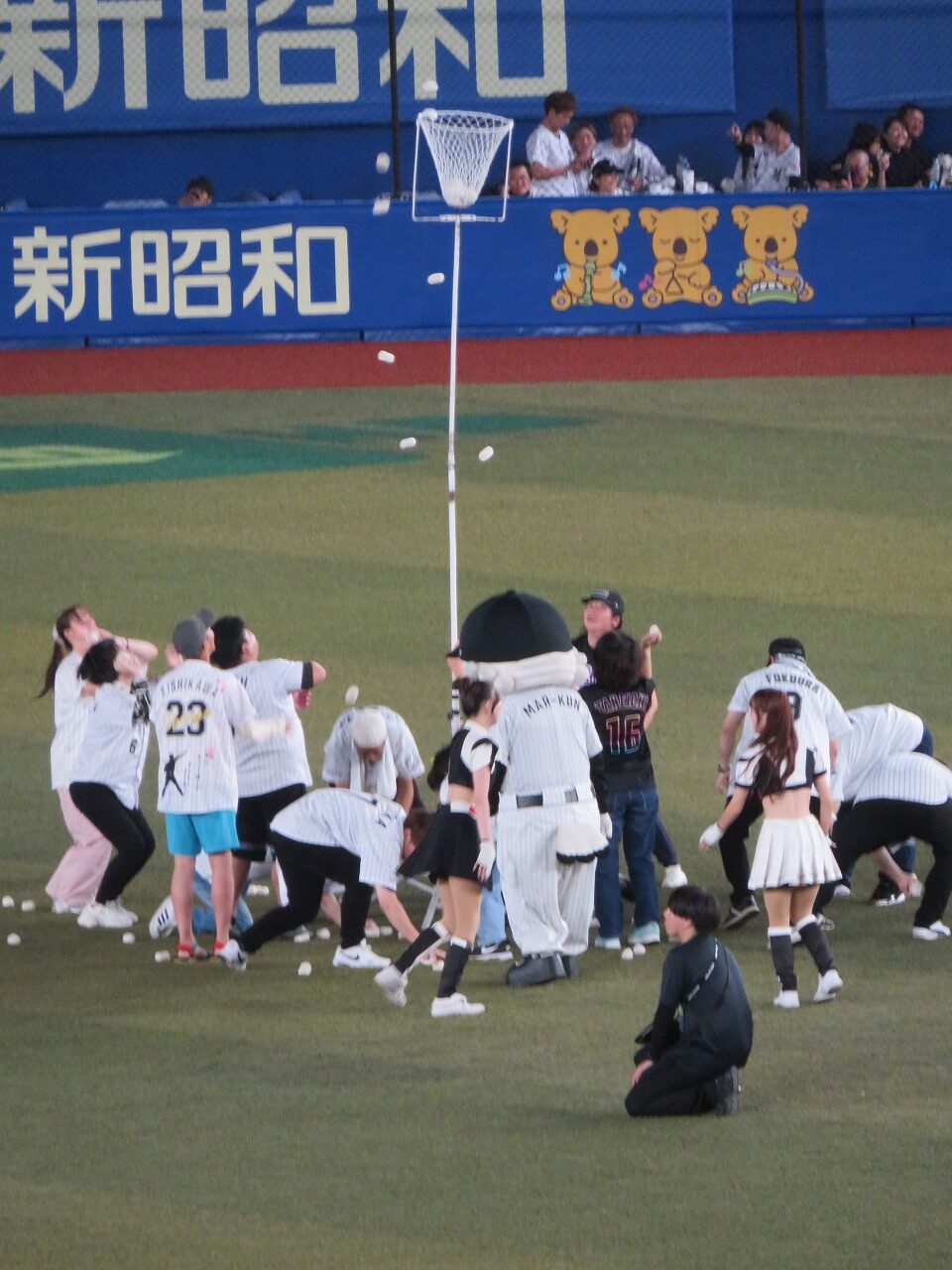 5回裏後に行われた、ファン対抗玉入れ対決に千葉ロッテマリーンズ山武後援会スタッフが参加しました。このイベントは、TEAM26会員の中から抽選で選ばれた方が参加できます。少し疲れたが、楽しく参加できたそうです。