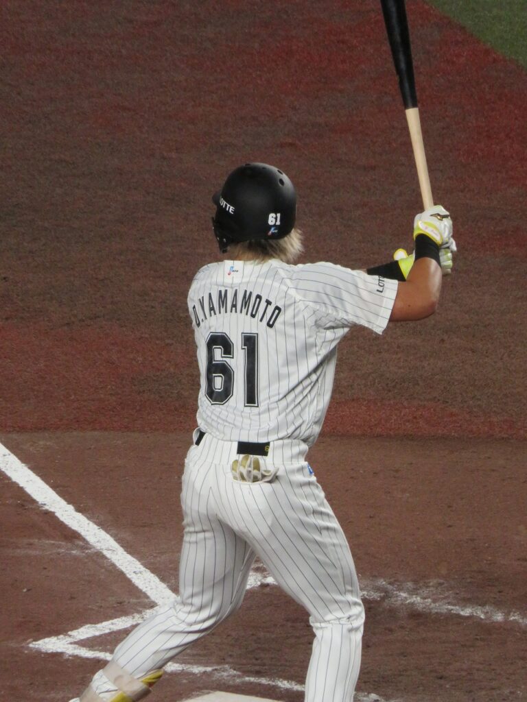 交流戦で5ホームランを放った山本選手です。リーグ戦でも量産を期待しております。