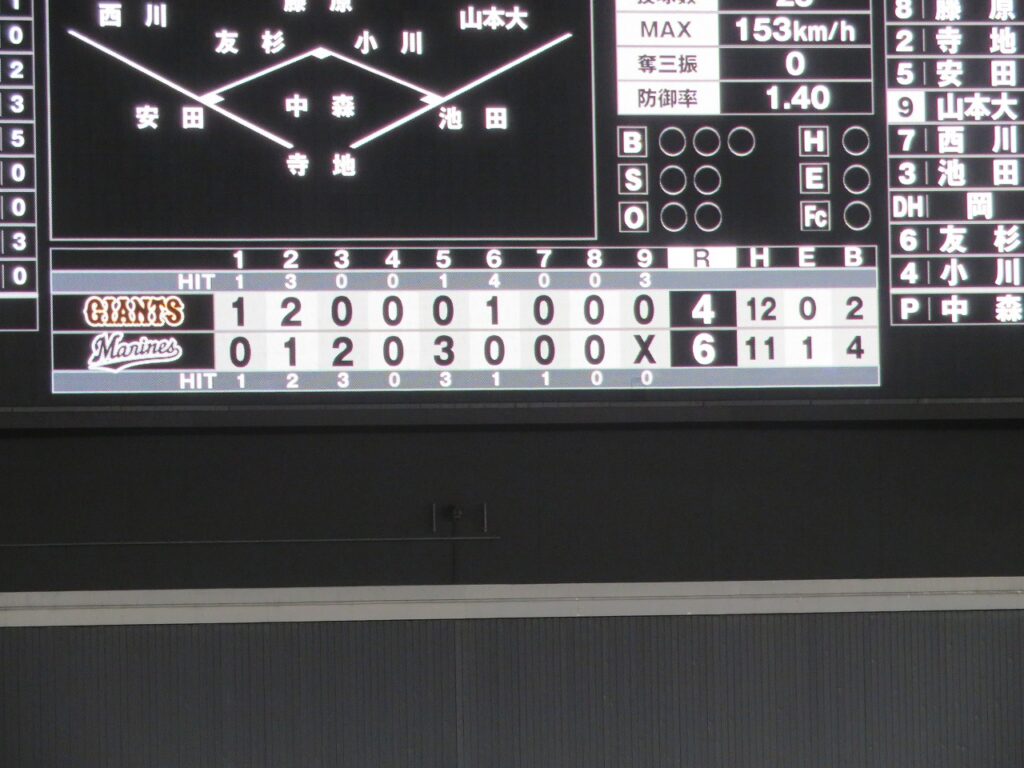 試合結果は、マリーンズが2点を追う3回に、西川選手のタイムリースリーベースヒットで試合を振り出しに戻します。そのまま迎えた5回には、池田選手と岡選手の連続タイムリーヒットで3点を挙げ、勝ち越しに成功しました。投げては、先発サモンズ投手が5回3失点と試合をつくり今季3勝目を挙げ、6対4でマリーンズが勝利しました。