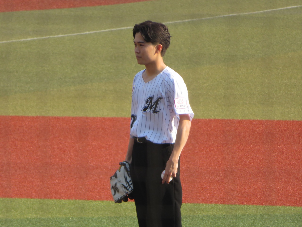 ファーストピッチは俳優の鈴木福さんです。サウスポーから大きく振りかぶると、足を高く上げる豪快フォームで、素晴らしい投球を見せてくれました。