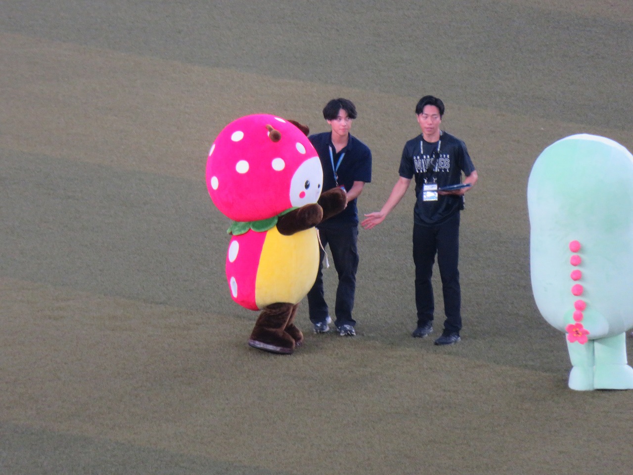 試合開始前には、ご当地キャラダービーが行われ山武市のSUNムシくんは、残念ながら優勝することができませんでした。来年は、優勝期待していますね。
