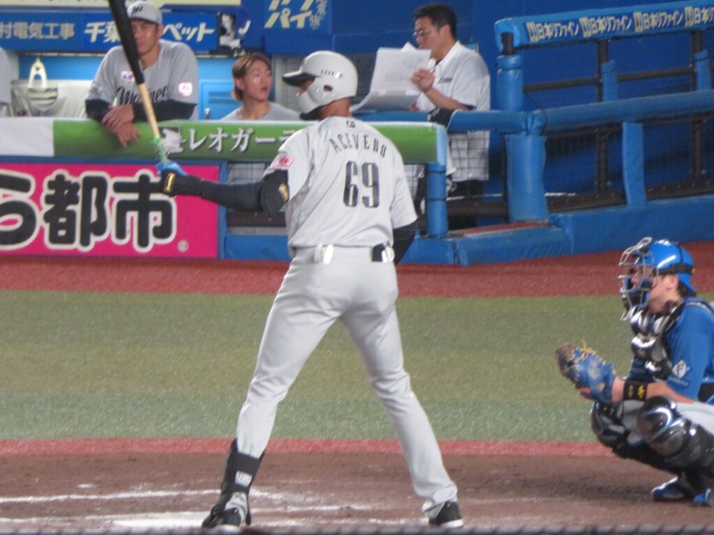 豪快来日1号ホームランを放ったドミニカ共和国出身のアセベド選手です。来季がとても楽しみな選手です。