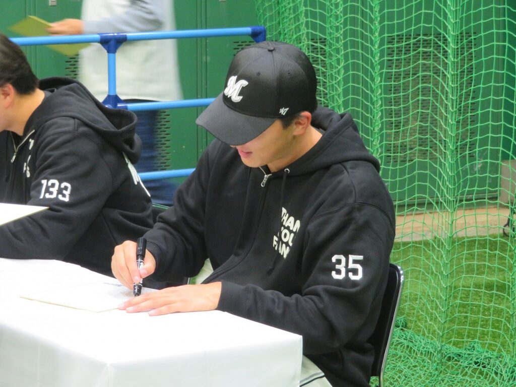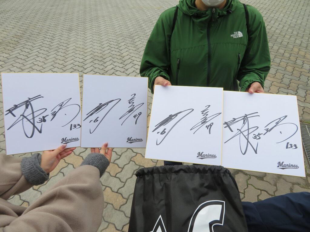 千葉ロッテマリーンズ山武後援会会員の方が、選手サイン会のイベントに当選し、種市投手、立松選手、田中投手、武内投手のサイン色紙を頂きました。おめでとうございます。