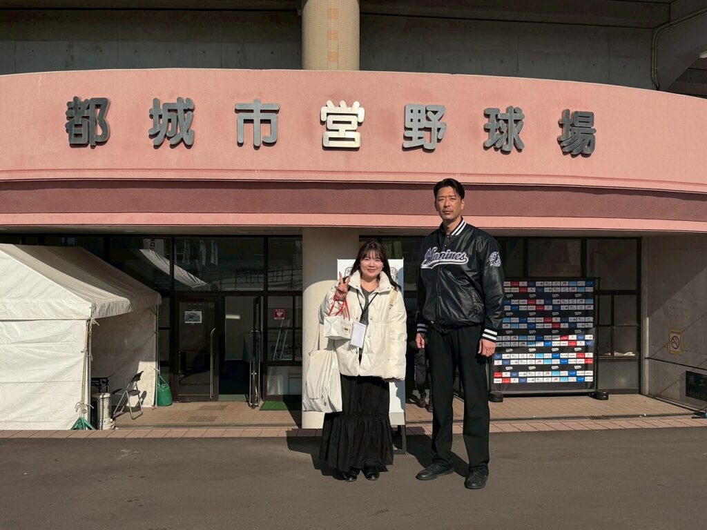都城キャンプでは、千葉ロッテマリーンズ山武後援会2025選手激励会に参加してくれた小川選手が元気よく練習に励んでおりました。