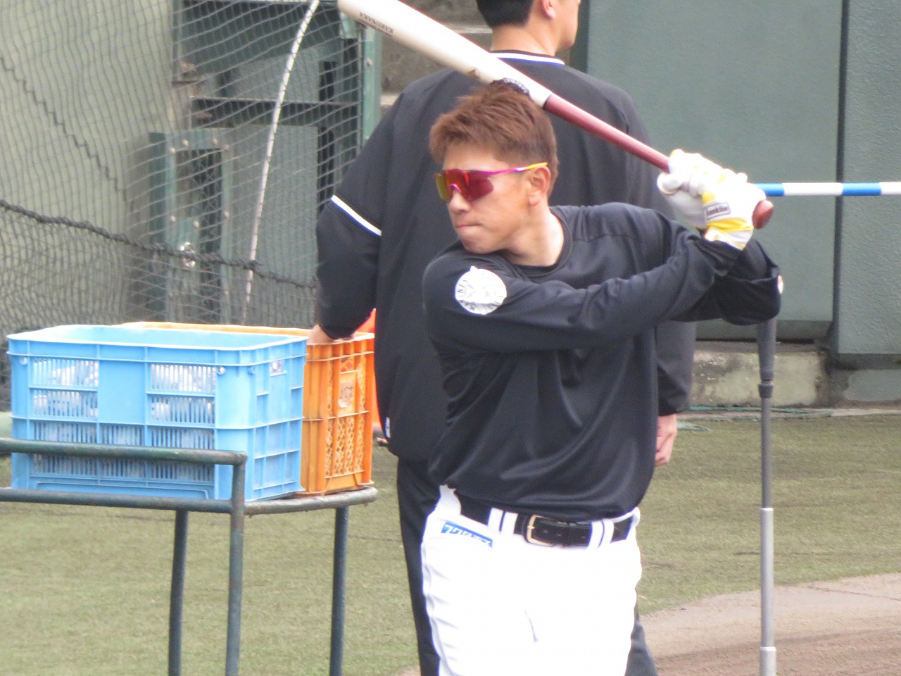 石垣キャンプでは、若手選手に混じりながらベテランの角中選手が、バッティング練習をしておりました。
