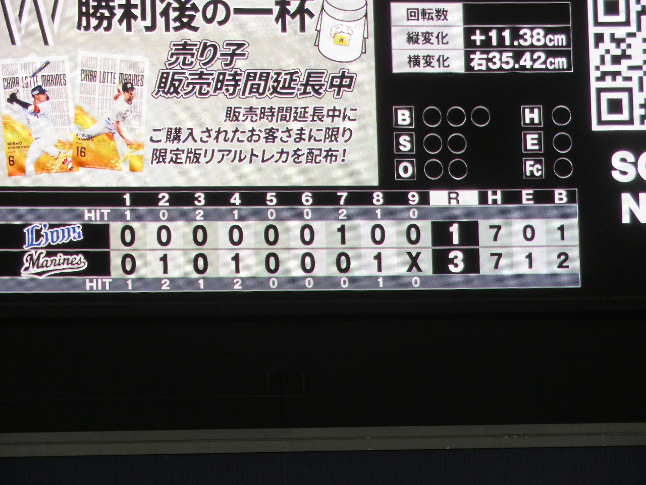 試合の結果は、2回に松川選手のタイムリーヒットで1点を先制します。その後2対1となって迎えた8回には、ポランコ選手のソロホームランで貴重な追加点を挙げました。投げては、先発の毛利投手が5回無失点と試合をつくりプロ初勝利し3対1でマリーンズが勝利しました。